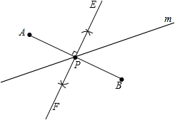 分析:连接AB,作AB的垂直平分线,交直线m于点P,即可得出答案.