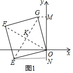 解答 解:(1)如图1中,连接OF、EG,OF交EG于K,作GM⊥y轴于M,EN⊥y轴于N.![]()