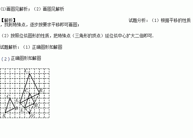 (2)以图中的O为位似中心,将△A1B1C1作位似变换且放大到原来的两倍,得到△A2B2C2.(在网格纸中作图)