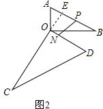 (2)过O作OE⊥AB于E,由已知条件求出当P在点E处时,点P到O点的距离最近为$\frac{3}{2}$,当旋转到OE与OD重合是,NP取最小值为:OP-ON=$\frac{1}{2}$;当点P在点B处时,且当旋转到OB在DO的延长线时,NP取最大值OB+ON=4.