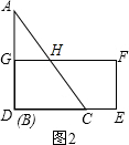 £¨2£©µ±tΪºÎֵʱ£¬ABÓëDGÖØºÏ£¨Èçͼ2Ëùʾ£©£¬²¢Çó³ö´Ëʱ¡÷ABCÓ볤·½ÐÎDEFGÖØºÏ²¿·ÖµÄÃæ»ý£®