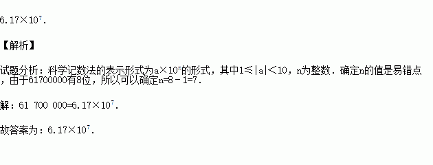 (2015秋•丹江口市期末)小宜同学在百度搜索引擎中输入“中国梦,我的梦”,能搜索到与之相关的结果约为61700000条,这个数用科学记数法可表示为 .