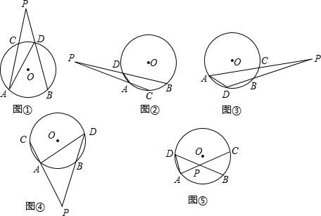 (2)若点P不在⊙O上,直线PA、PB交⊙O于点C、D(点C与点A、点D与点B均不重合),连接AD,设∠CAD=α,∠ADB=β,试用α、β表示∠APB(请直接写出答案,并画出示意图).