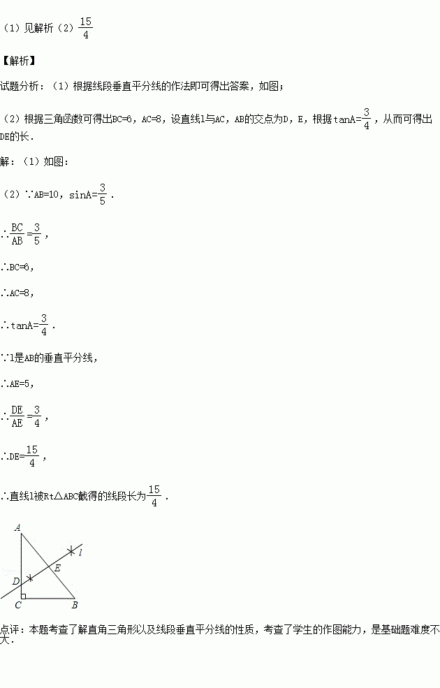 (1)用尺规作图作线段AB的垂直平分线l(保留作图痕迹,不要求写作法、证明);