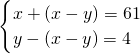 (2)甲、乙两人聊天,甲对乙说:“当我的岁数是你现在的岁数时,你才4岁.”乙对甲说:“当我的岁数是你现在的岁数时,你得61岁.”充满智慧的你请算出两人现在各多少岁.