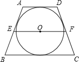 点评:本题考查的是圆切线的性质及等腰梯形中位线的性质,得出AD+BC=AB+CD是解题关键.