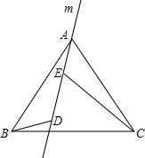如图,直线m经过正三角形ABC的顶点A,在直线m上取两点D,E,使得使∠ADB=∠AEC=120°.通过观察或测量,猜想线段BD,CE与DE之间满足的数量关系,并予以证明.
