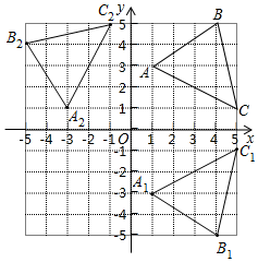 解答 解:(1)如图所示,△A1B1C1即为所求,点B1的坐标为(4,-5);![]()