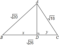 解答:解:如图所示:作AD⊥BC于点D,设BD=x,DC=y,