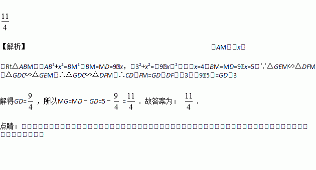 如图,在矩形ABCD中,AB=3,BC=9,把矩形ABCD沿对角线BD折叠,使点C与点F重合,BF交AD于点M,过点C作CE⊥BF于点E,交AD于点G,则MG的长=_____.