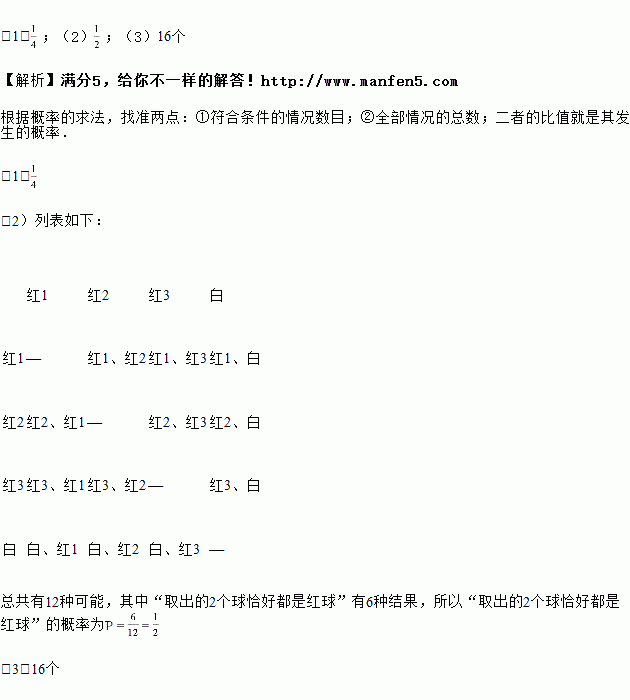 (1)若从这个口袋中随机地取出1个球,则“取出的球恰好是白球”的概率是_______;