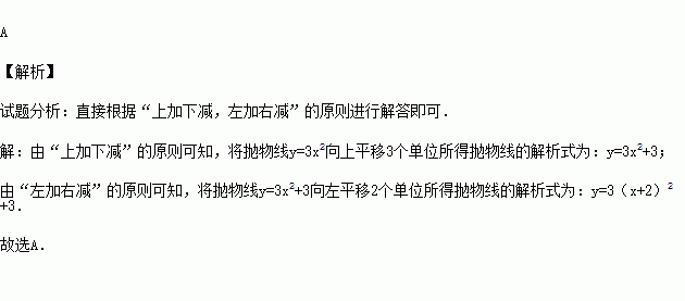 (2012•泰安)将抛物线y=3x2向上平移3个单位,再向左平移2个单位,那么得到的抛物线的解析式为( )