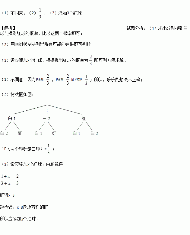 (1)小明认为,搅均后从中任意摸出一个球,不是白球就是红球,因此模出白球和模出红球这两个事件是等可能的. 你同意他的说法吗?为什么?