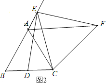 (2)如图2,猜想:AB=AF-BD; ![]()