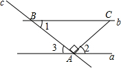 解答 解:∵直线a∥b,∠1=40°,∴∠3=∠1=40°.∵AC⊥AB,∴∠BAC=90°,∴∠2=90°-∠1=90°-40°=50°.故选C.