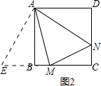 (3)如图2,M、N分别是正方形ABCD的边BC、CD上一点,且BM+DN=MN,试求∠MAN的大小.