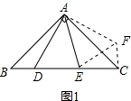 如图1,在Rt△ABC中,∠BAC=90°,AB=AC,点D、E是BC边上的任意两点,且∠DAE=45°.
