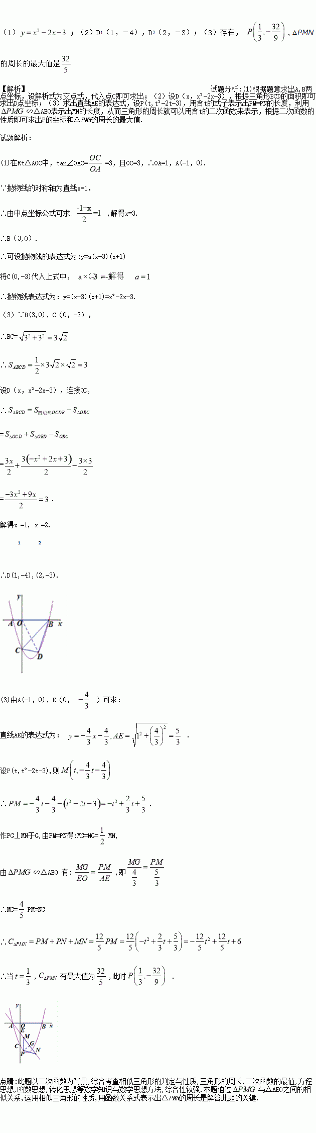 如图(1),抛物线y=ax2+bx+c与x轴交于A(x1,0)、B(x2,0)两点(x1<0<x2),与y轴交于点C(0,-3),若抛物线的对称轴为直线x=1,且tan∠OAC=3.