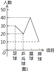 (3)根据题目中的信息可以求得爱好篮球和排球的人数,从而可以将折线统计图补充完整.