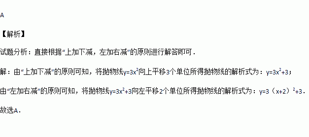 将抛物线y=3x2向上平移3个单位,再向左平移2个单位,那么得到的抛物线的解析式为( )