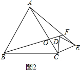 (2)根据等边三角形的性质得到AC=BC,CE=CD,∠ACB=∠DCE=60°,推出△ACE≌△BCD,由全等三角形的性质得到∠CAF=∠CBF,由对顶角相等得到∠AOF=∠BOC,即可得到结论.