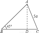 如图,在△ABC中,∠B=45°,cos∠C=,AC=5a,则△ABC的面积用含a的式子表示是