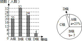 £¨2£©CµÈ¼¶ÈËÊýΪ£º80-20-32-4=24£¨Ãû£©£¬²¹È«ÌõÐÎͳ¼ÆÍ¼Èçͼ£º![]()