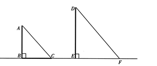 已知:如图10,AB和DE是直立在地面上的两根立柱,AB="5" m,某一时刻,AB在阳光下的投影BC="4" m.