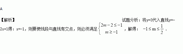 在平面直角坐标系中,点A,B的坐标分别为(2m-2,3),(m,3),且点A在点B的左侧,若线段AB与直线y=-2x+1相交,则m的取值范围是( )