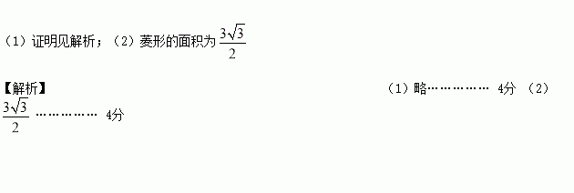 (2)直线PD切⊙O于D,交直径BA的延长线于P,若切线长PD的长为3,求菱形的面积.