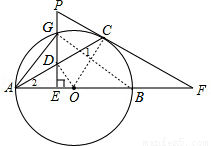上一点,GE⊥AB,垂足为点E,交AC于点D,过点C的切线与AB的延长线交于点F,与EG的延长线交于点P,连接AG.