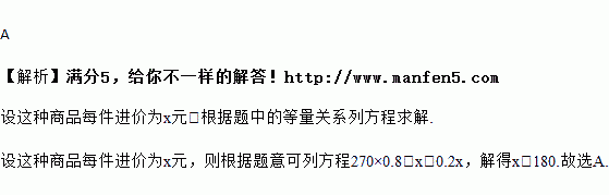 某种商品每件的标价是270元,按标价的八折销售时,仍可获利20%,则这种商品每件的进价为( )