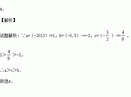 如果a=(-2013)0 ,b=(-0.5)-1,c=