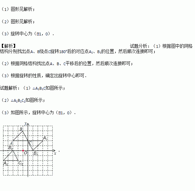 (3)若将△A2B2C2绕某一点旋转可以得到△A1B1C,请直接写出旋转中心的坐标.