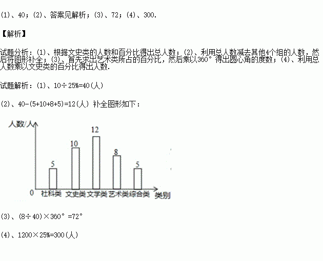 (4)若该校有1200名学生,估计全校最喜欢“文史类”图书的学生有 人.