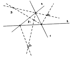 如图,直线表示相互交叉的公路,现要建一个货物中转站,要求它到三条公路的距离相等,则可供选择的地址有几处?请画出你的方案。(尺规作图,不要求写作法)![]()