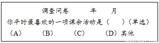 小军为了解同学们的课余生活,设计了如下的调查问卷(不完整):