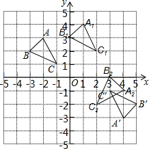 解答 解:(1)将A,B,C,分别右平移3个单位长度,再向上平移1个单位长度,可得出平移后的△A1B1C1;
