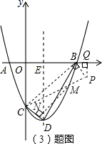 (3)求出BC的长,过点B作BP⊥BC交CM的延长线于P,过点P作PQ⊥x轴于Q,根据点B、C、D的坐标判断出BC、CD与y轴的夹角都是45°,从而判断出∠BCD=90°,再求出BC∥MN,根据两直线平行,内错角相等可得∠BCP=∠CMN,再分两种情况求出△BCP和△BDE相似,然后根据相似三角形对应边成比例求出BP,再求出BQ、PQ,然后分别写出点P的坐标,利用待定系数法求出直线CP的解析式,再与抛物线解析式联立求解即可得到点M的坐标.