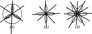 图形(1)中有_____条对称轴,图形(2)有_____条对称轴,图形(3)有_______条对称轴.