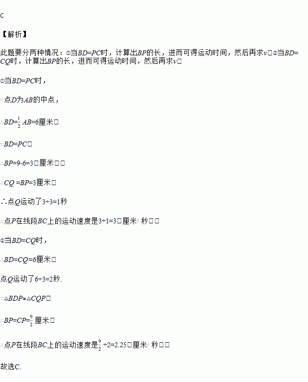 如果点P在线段BC上以v厘米![]()
