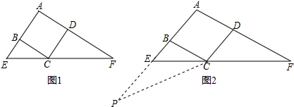 (2)设∠BCE=∠F=α,则∠ADC=3α,∠DCF=2α.先由平行线的性质得出∠EBC=∠A=∠CDF,再根据两角对应相等的两个三角形相似得出△BEC∽△DCF,则$\frac{BE}{DC}=\frac{BC}{DF}$,由BC=DC,得到BC2=BE×DF.延长AE到点P,使EP=EC,连接PC,利用AAS证明△PBC≌△FDC,得出BP=DF,进而得出BC2=BE2+BE•CE;