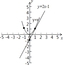 解答:解:在同一平面直角坐标系中画出y=2x-1与y=x2的图象,如图