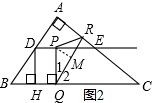 ①如图2当PQ=PR时,过点P作PM⊥QR于M,则QM=RM.![]()