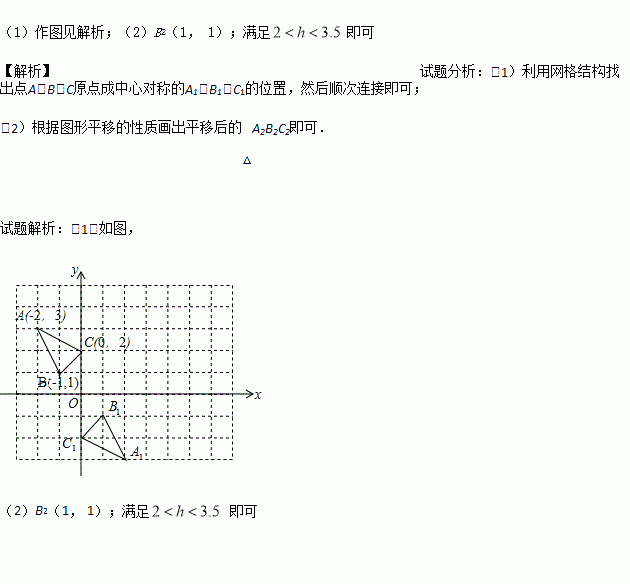 (1)作△ABC关于原点O成中心对称的△A1B1C1.
