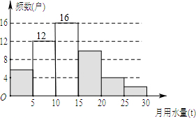 | ÔÂÆ½¾ùÓÃË®Á¿x£¨t£© | ƵÊý£¨»§£© | ƵÂÊ |