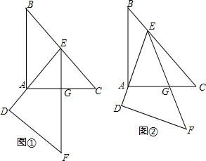 .将△DEF的顶点E放在BC上移动(E与B、C不重合),在E点移动过程中,始终保持DE经过点A,EF交BC于点G.当E为BC的中点时,如图①,易证△ABE∽△ECG.