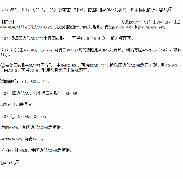 ①使四边形AQMK为为菱形,若存在,求出t的值;若不存在,请说明理由