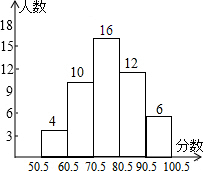 Ôò¸Ã°à70.5¡«80.5·ÖÊý¶ÎµÄѧÉúÊÇ50¡Á0.32=16£¨ÈË£©£¬