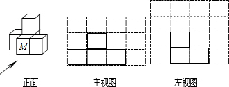 (2)如果移走图中的一个小正方体,使新几何体的主视图、左视图一样,应该移走哪一个?(在相应小正方体上标上字母M).